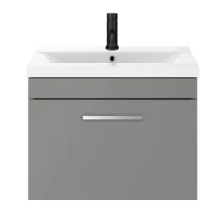 Arezzo 600 Matt Grey Wall Hung 1-Drawer Vanity Unit with Ceramic Mid-Edged Basin + Polished Chrome Handle