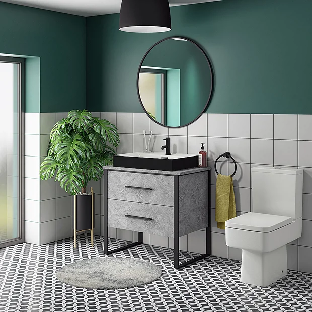 Arezzo 800mm Concrete-Effect Matt Black Floor Standing Framed 2 Drawer Vanity Unit with Matt Black Polymarble Countertop Basin
