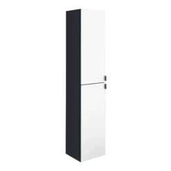 The Arezzo matt blue bathroom furniture range combines up to date looks with practical storage. Features a soft close door and provides plenty of space for toiletries, the Arezzo wall hung tall storage cabinet is perfect for adding modern style to any bathroom. Supplied with a on-trend modern brushed brass square bar handle and wall fixings.