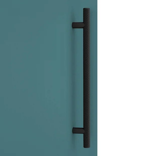 Arezzo Industrial Style Matt Teal Green Wall Hung Single Door Tall Storage Cabinet + Matt Black Knurled Round Pull Handle