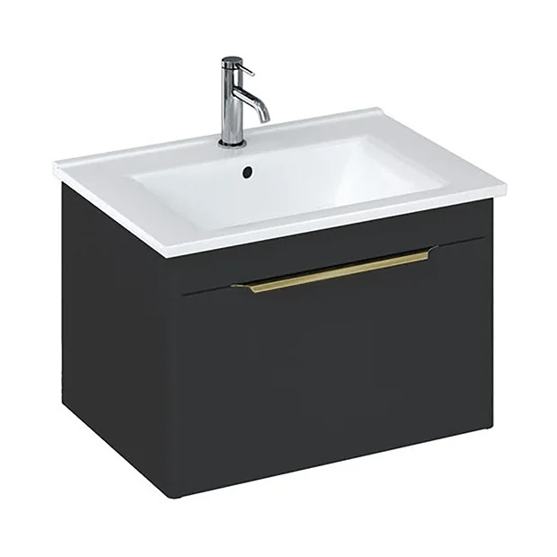 Britton Shoreditch 650mm Wall-Hung Single Drawer Vanity Unit with Brass Handle – Matt Grey