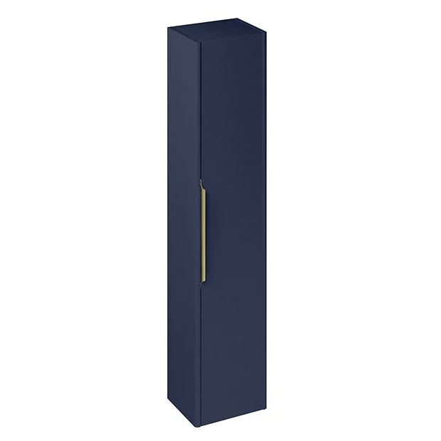 Britton Shoreditch Wall-Hung Tall Cabinet With Brass Handle – Matt Blue