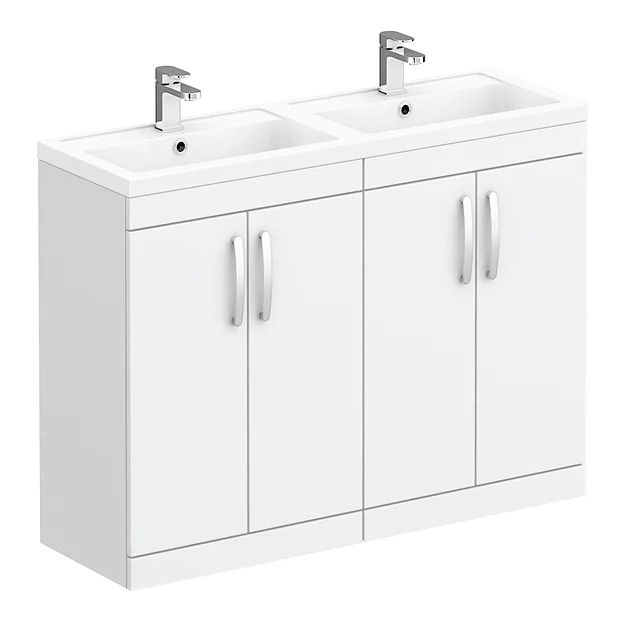 Brooklyn 1205mm White Gloss 4-Door Double Basin Vanity Unit