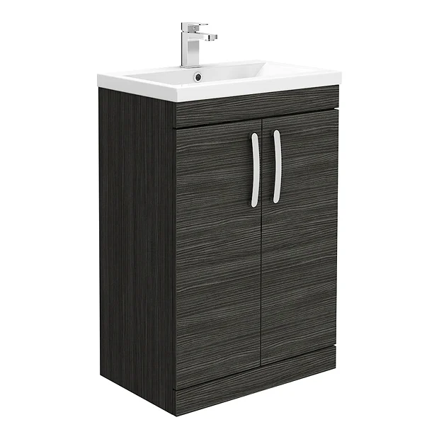 This Brooklyn Black Vanity Unit is a practical piece that’s also pleasing to the eye. Crafted from moisture resistant melamine faced chipboard in a woodgrain texture, it comes in Black for a statement look. At 610mm wide, this freestanding vanity unit offers plenty of room for storing bathroom essentials, keeping surfaces neat and tidy. The mid edged basin in white gloss ceramic makes a striking contrast with the black vanity unit. Matt chrome strap handles complete the modern design and the two soft closing doors prevent slamming. This unit even comes ready assembled for quick and easy installation.