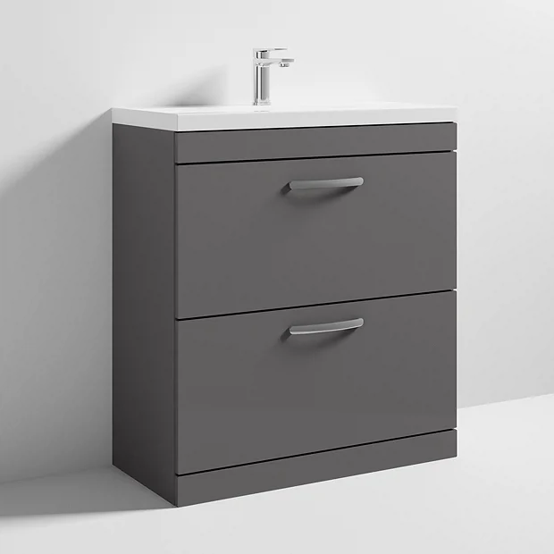 Brooklyn 800mm Gloss Grey Floor Standing 2-Drawer Vanity Unit with Thin-Edge Ceramic Basin