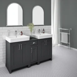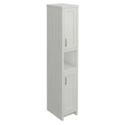 Victorian elegance meets 21st century practicality in this Chatsworth Traditional Green Tall Cabinet. In sophisticated satin green, with panel detailing and brass oxide finish handles, this tallboy bathroom cabinet oozes countryside manor charm. Make the most of your bathroom’s height thanks to the slim but tall design. The Chatsworth bathroom cabinet has two soft close cupboards with internal shelves, for keeping your essentials neat, and one open shelf for showing off any statement pieces – or simply keeping your most used items to hand. Pair it with the Chatsworth Traditional Green Small Vanity for period inspired perfection.