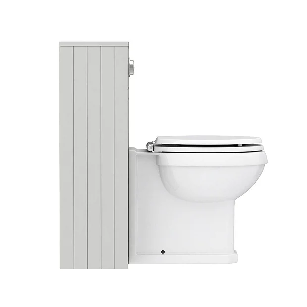The Chatsworth traditional 500mm wide back to wall toilet unit, Victorian inspired design with a modern twist. The Chatsworth range of charming bathroom furniture features classic styling with a satin grey finish and tongue-and-groove side panelling. Manufactured to a high standard, the inspired Chatsworth range of luxury furniture with it’s clean minimalist design and muted palette blends beautifully with any style of bathroom.