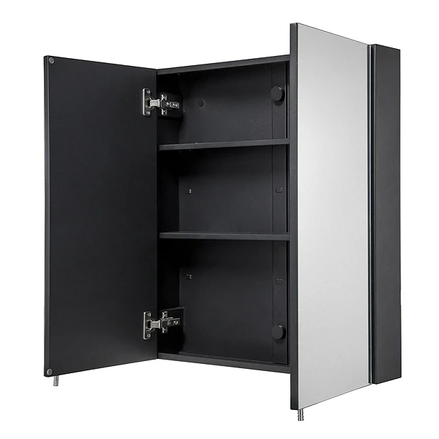 Croydex Dawley Matt Black 600mm Double Door Mirror Cabinet – WC930221