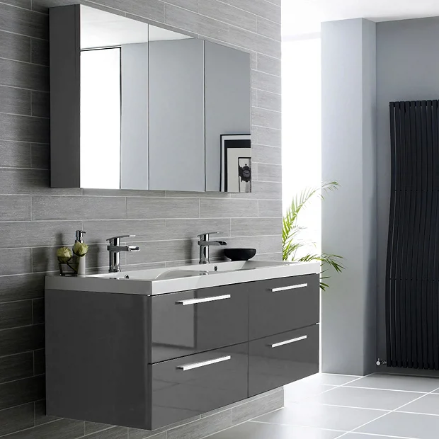 Hudson Reed Gloss Grey Quartet Double Basin Vanity Unit (1440mm Wide)