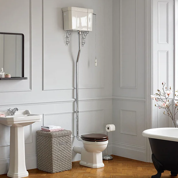 The Waverley High Level Toilet draws on the heritage of Shires and Edwardian design, creating an extensive range of basins and toilets. It’s water efficient cistern uses a dual flush 6 or 4 litres and comes complete with a traditional pull chain flush, chrome flush pipe kit and cistern fittings. This classic range is guaranteed to add a touch of grandeur and magnificence to your bathroom.