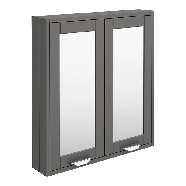 Keswick Grey 600mm Traditional Shaker-Style Wall Hung 2 Door Mirror Cabinet